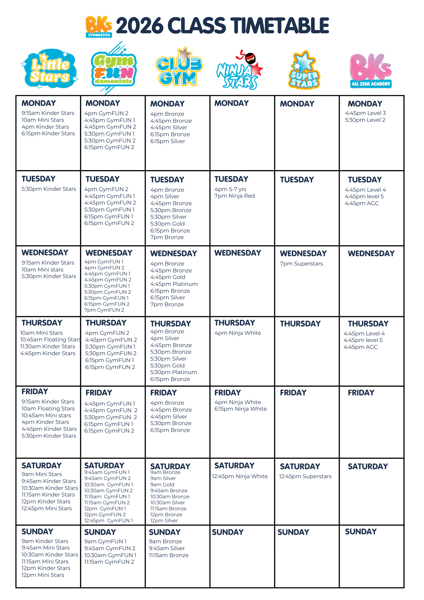 Every BK’s Gymnastics centre in Victoria is registered for this program.